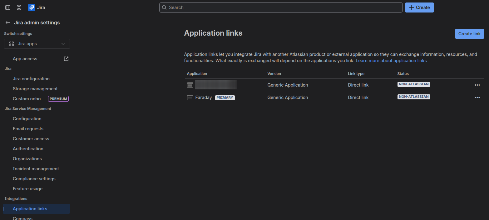 The application link configuration will look like the previous screenshot, assuming your Jira url is https://faraday.atlassian.net , your Faraday instance is located at http://localhost:5985 and you have pasted the previously obtained Faraday’s Consumer Key into the Public Key field.