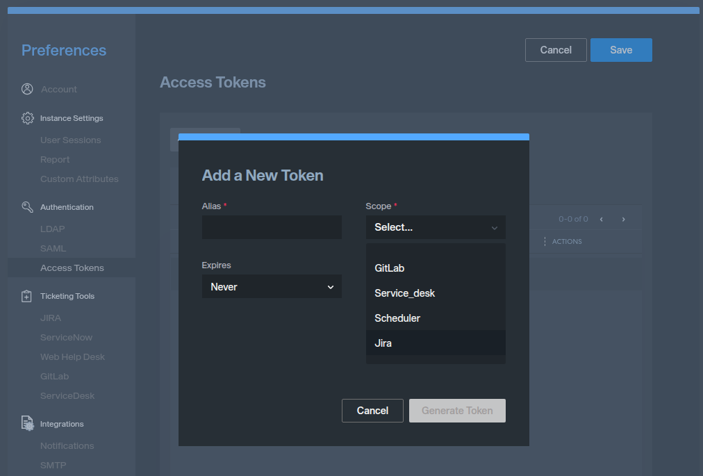 - Value: you have to create a new access token in Faraday, using the scope “Jira”. Go to Preferences, Access tokens. Then click on Add Token, choose a name for your token and select the scope: Jira.