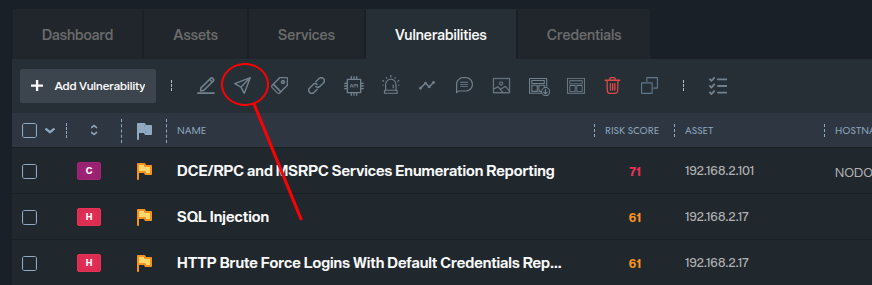 As in any other integration, you can send only confirmed vulnerabilities to your issue tracker. To send vulnerabilities to your configured projects you have to go to the Vulnerability Management section then Vulnerabilities tab (any context inside/outside workspace/asset), select the vulnerability(ies) and click on the context menu.